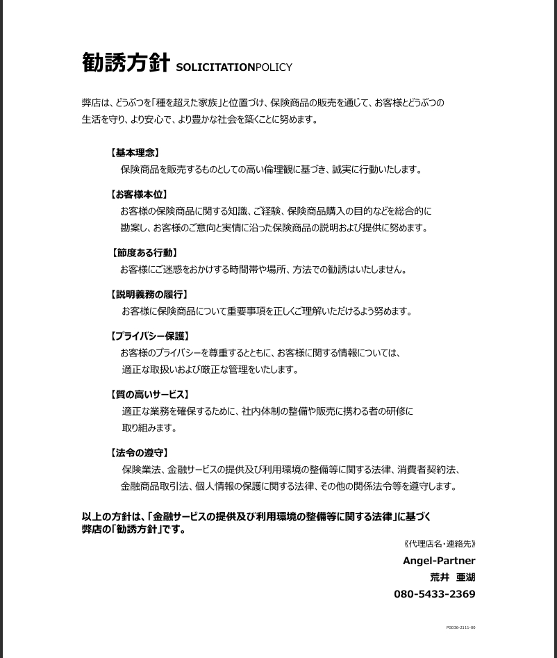 また、当店にお問合せいただく際は、必ずご家族様の同意を得てからご連絡ください。