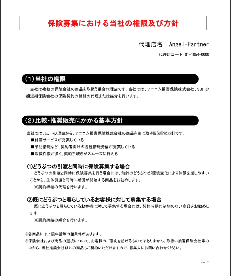 ペットショップAngel-PartnerHOME>>ご購入Information>>生体保証制度 |